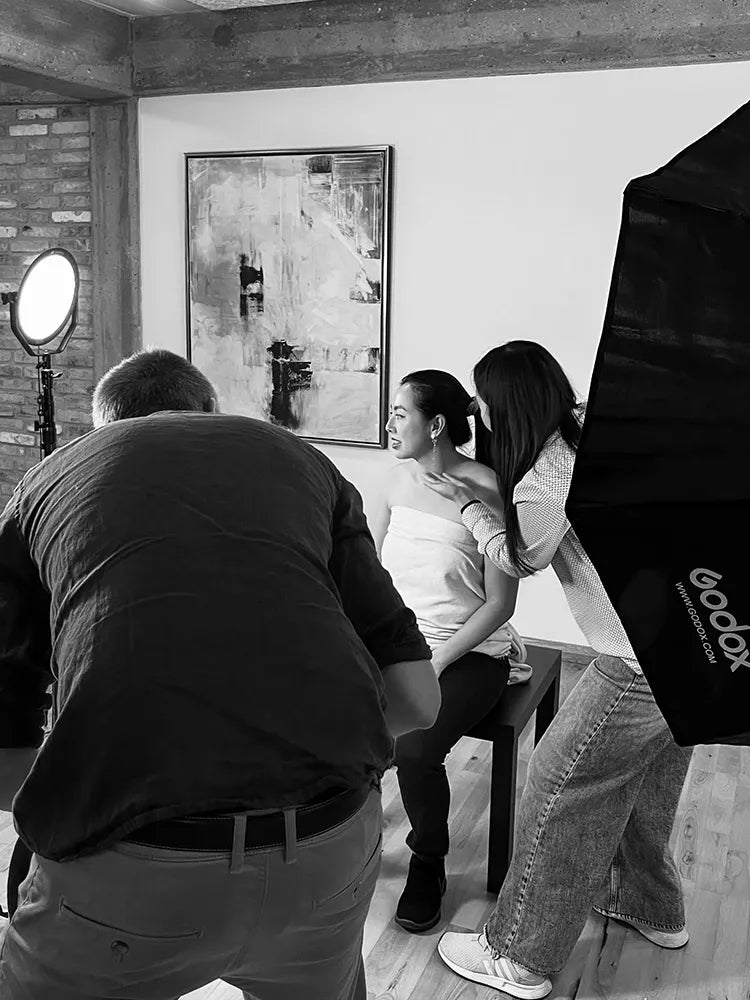 In our latest photoshoot, the Mei “The Fortune Cookie” collection gets an instant attitude boost thanks to a striking red eyeliner. The styling stays minimal yet bold, the kind of beauty detail that brings a strong look to life while amplifying the jewellery’s voluminous silhouettes.
